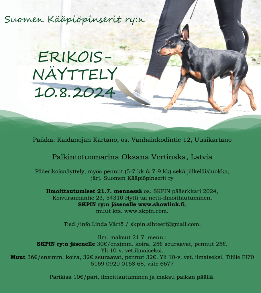 Arvostelu alkaa klo 10, ilmoittautumisohjeet ja -maksut löydät kuvasta. Showlinkin ilmoittautumisjärjestelmä on käytössä yhdistyksen jäsenille täällä, muille erillinen sähköinen ilmoittautumiskaavake, täältä.